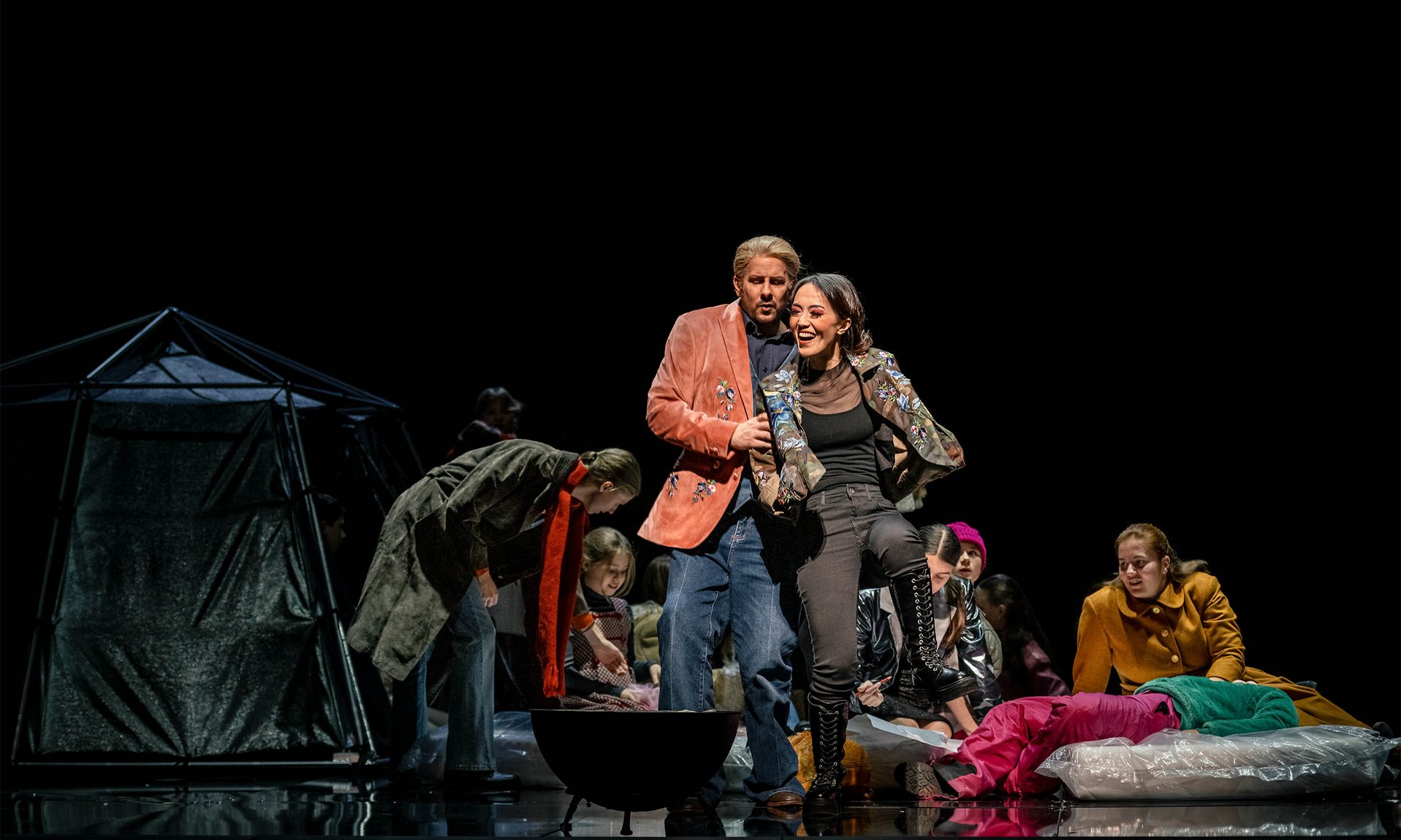 | Ihr Geliebter Julien, ein Pariser Existentialist ganz in Schwarz, war Daniel Pataky mit zwar schneidigem Tenor, spielerisch aber erstaunlich zurückhaltend (man könnte gespannt sein, ihn in Charpentiers „Louise“-Fortsetzung in „Julien ou La vie du poète“ zu erleben). |