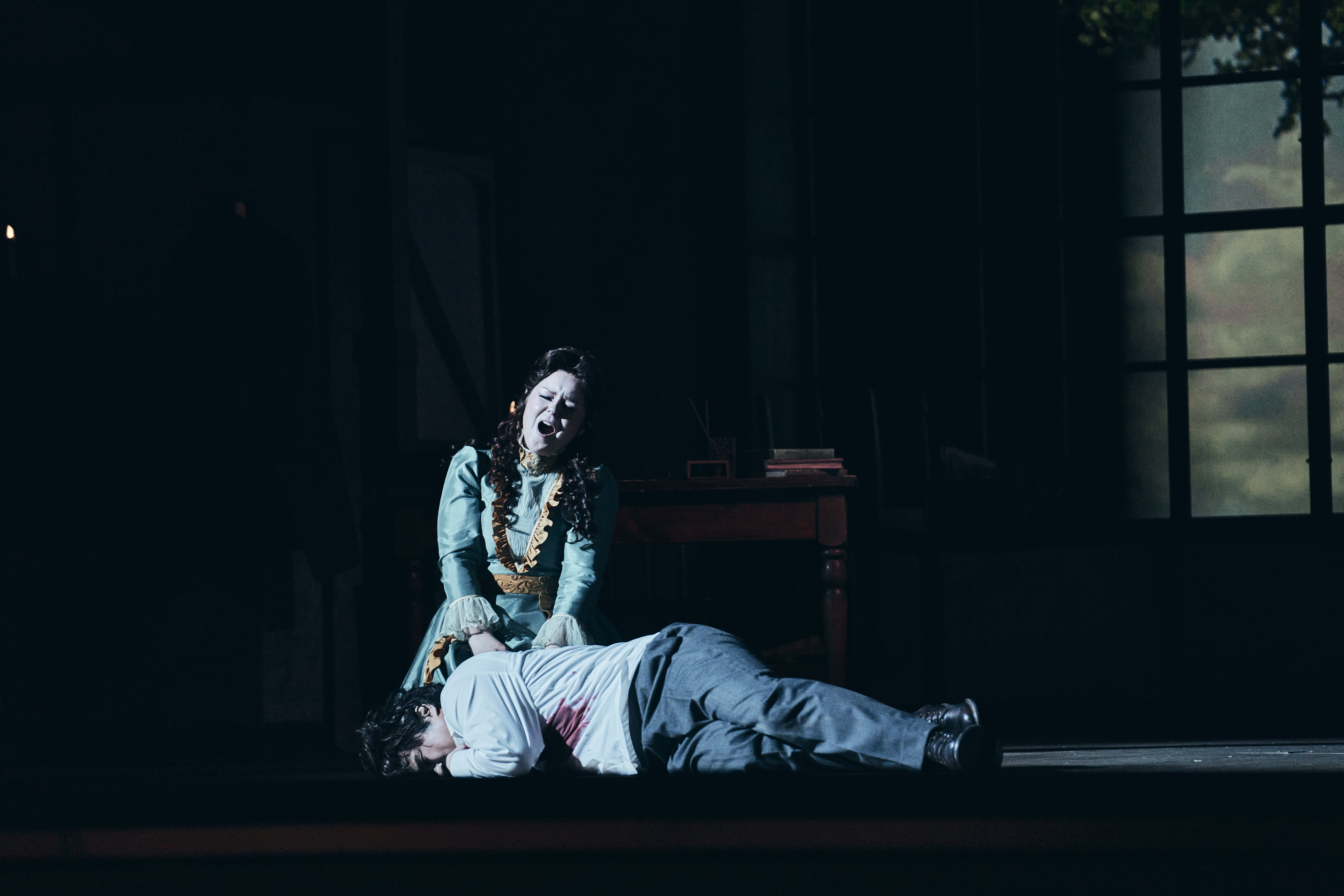 | Alles überstrahlende Stimme ist die Thurza von Karis Tucker, die die warme Fülle ihres Mezzosoprans auch in der Höhe lodern lässt. So lasst mich weinen meinen Schmerz, singt sie im zweiten Akt, um sich über der Harfe isoldenhaft aufzuschwingen: o Liebe! |